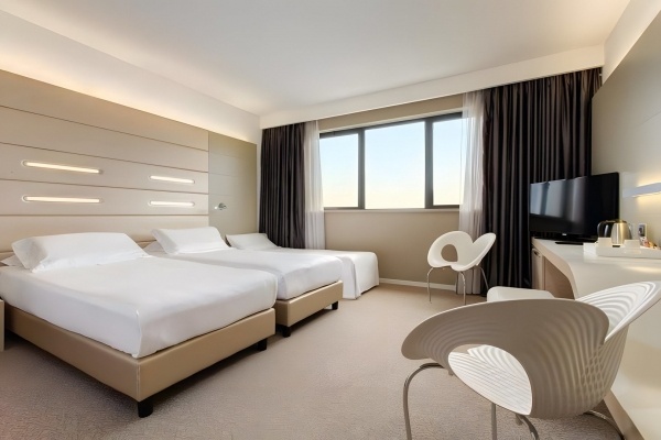 A standard szoba két egyszemélyes ággyal, két fő részére, egy pótágy lehetőségével gyermek számára, kb. 25 m?-es. Egyénileg szabályozható légkondicionálással rendelkezik. A fürdőszobában zuhanyzó vagy kád, WC, bidé és hajszárító találhatók. A szobában két egyszemélyes ágy, vezeték nélküli internet, műholdas televízió, telefon, széf, vízforraló, kis hűtőszekrény és vasalókészlet (kérésre) áll rendelkezésre. Ingyenes kiságy 2 éves korig, előzetes kérésre. Kilátás a környékre. A standard háromfős szoba három fő részére, kb. 25 m?-es. Egyénileg szabályozható légkondicionálással rendelkezik. A fürdőszobában zuhanyzó vagy kád, WC, bidé és hajszárító találhatók. A szobában vezeték nélküli internet, műholdas televízió, telefon, széf, vízforraló, kis hűtőszekrény és vasalókészlet (kérésre) áll rendelkezésre. Ingyenes kiságy 2 éves korig, előzetes kérésre. Kilátás a környékre.