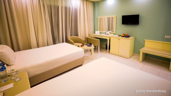 A standard szoba kényelmes elhelyezést biztosít két fő részére, lehetőséggel két pótágy elhelyezésére felnőtt vagy gyermek számára, egyszemélyes ágy vagy kanapé formájában. A tágas, körülbelül 32 m?-es szobában egyénileg szabályozható légkondicionálás működik, valamint fürdőszoba található káddal vagy zuhanyzóval, WC-vel és hajszárítóval. A felszereltség része a műholdas televízió, telefon, széf, valamint kávé- és teafőző készlet. Igény esetén, előzetes rendelés alapján, ingyenesen biztosított kiságy 2 év alatti gyermekek számára. A szoba erkélyes vagy teraszos, ahol asztal és székek is helyet kapnak. A minibár térítés ellenében áll rendelkezésre.