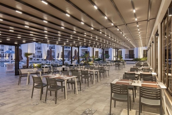 SZOLGÁLTATÁSOK: medencék napernyőkkel és nyugágyakkal o beltéri medence o jacuzzi o csúszdák o főétterem o bárok (lobby, pool, beach) o animációs programok o esti show o fitness o jóga o pilates o asztalitenisz o darts o billiárd o törökfürdő o gőzkabin o szauna o felár ellenében: SPA központ o törökfürdő kezelések o masszázs o kozmetikai kezelések o orvosi szolgáltatás o mosoda o vízi sportok a strandon