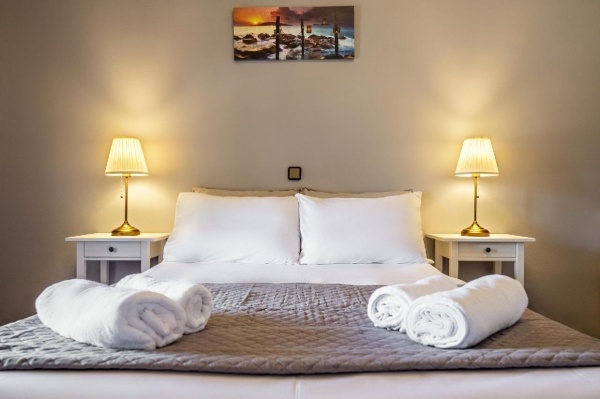 Szobák: Minden stúdió (~28m2) a közelmúltban felújított, szépen berendezett, konyhával (a főzősarok és étkező a hálószobában van kialakítva), fürdőszoba zuhanyzóval, hajszárítóval, hűtővel és vízforralóval felszerelt. Minden apartman (~46m2) hasonlóan berendezett, két hálószobás, stúdió jellegű konyhával, hűtővel, vízforralóval, fürdőszoba zuhanyzóval felszerelt. Minden szobához erkély vagy terasz tartozik, szárazföldre vagy medencére néző kilátással. Az apartmanoknál az 5. fő és a stúdióknál a 3. fő elhelyezése pótágyon történik. A szobák minősége jelentősen felülmúlja az átlagos görögországi apartmanok színvonalát, jó felszereltséggel és kiemelkedő kényelemmel. Egyes szobák berendezése, színvilága, kialakítása eltérhet a többitől. Felár ellenében légkondicionálás a helyszínen igényelhető: kb.: 10 euró / nap / klíma
