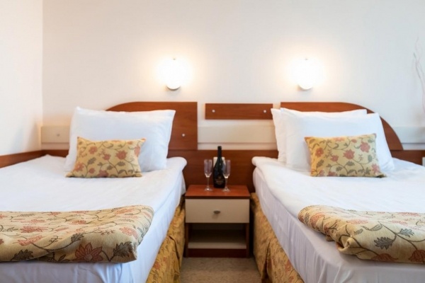 o standard szobák: kb. 19 m?, max. 2+1 vagy 3 fő részére, parkkal szemben, oldalról tengerre néző vagy tengerre néző kilátással