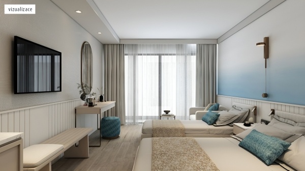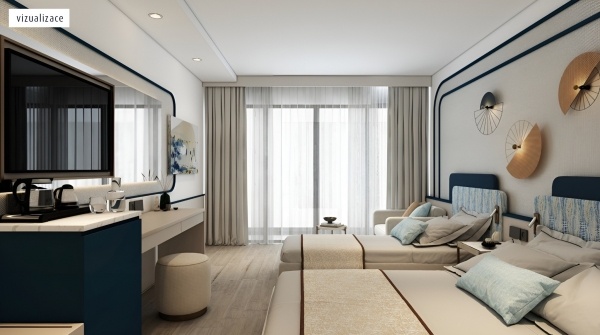 - Kétágyas szoba, Plus, Superior, részleges kilátással a tengerre: ugyanazok a felszereltségek, mint az alapszobákban, maximum 4 fő elszállásolására alkalmas, a szálloda így szabályozza a szállodában tartózkodók maximális számát.