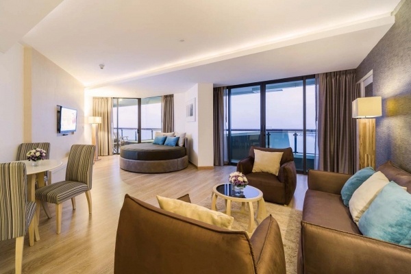 Deluxe lakosztály 2 fő részére: (2 pótágy lehetőséggel) kb. 59 m2, egyénileg szabályozható légkondicionálás, fürdőszoba (kád vagy zuhany, wc, hajszárító, köntös, papucs), vezeték nélküli internet, műholdas televízió, telefon, minibár, kávé/tea készlet, továbbá: belépés a Dara Club Lounge-ba, privát be- és kijelentkezés, reggeli a Radius étteremben, erkély (asztal, székek és jakuzzi), tengerre néző, fizetős: széf.
