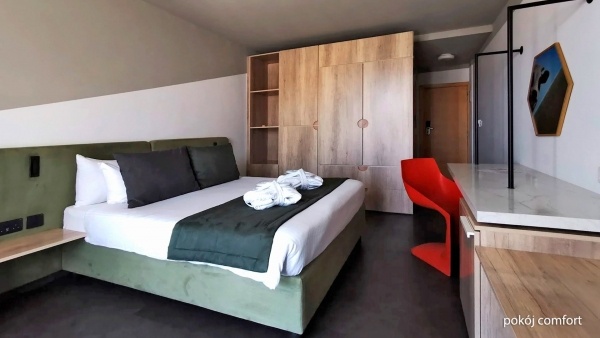 A szálloda kényelmes és stílusos szobákat kínál, amelyek minden igényt kielégítenek. A kényelmi szobák körülbelül 24 m?-esek, légkondicionáltak, és két fő számára alkalmasak. A fürdőszobában zuhany, WC, hajszárító és kozmetikai készlet található. A szobákban vezeték nélküli internet, műholdas televízió, kávé/tea készlet és széf áll rendelkezésre. Kérésre ingyenes kiságy is biztosított 2 év alatti gyermekek számára. Az erkélyen asztal és székek találhatók, és a kilátás a környékre nyílik. A minibár fogyasztás szerint fizetendő.