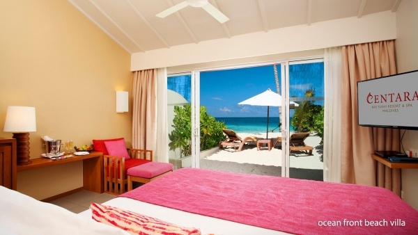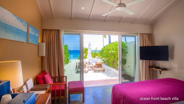 Az elegáns, modern stílusban berendezett villák a pihenés minden kényelmét biztosítják. Az óceánparti villák kb. 45 m?-esek, kétfős elhelyezéssel. Egyénileg szabályozható légkondicionálással, mennyezeti ventilátorral, zuhanyzós fürdőszobával, hajszárítóval és kozmetikai készlettel rendelkeznek. A felszereltséghez vezeték nélküli internet, műholdas televízió, telefon, széf, valamint kávé- és teakészlet tartozik. A tágas terasz napozóágyakkal, asztallal és napernyővel felszerelt, kilátással a lagúnára. A minibár térítés ellenében, fogyasztás szerint vehető igénybe.