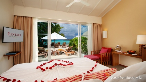 Az elegáns, modern stílusban berendezett villák a pihenés minden kényelmét biztosítják. Az óceánparti villák kb. 45 m?-esek, kétfős elhelyezéssel. Egyénileg szabályozható légkondicionálással, mennyezeti ventilátorral, zuhanyzós fürdőszobával, hajszárítóval és kozmetikai készlettel rendelkeznek. A felszereltséghez vezeték nélküli internet, műholdas televízió, telefon, széf, valamint kávé- és teakészlet tartozik. A tágas terasz napozóágyakkal, asztallal és napernyővel felszerelt, kilátással a lagúnára. A minibár térítés ellenében, fogyasztás szerint vehető igénybe.