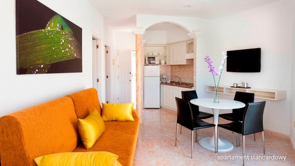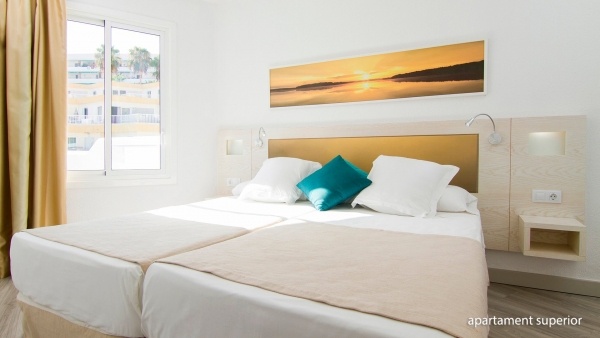SZOBA: standard apartman: 2 fős (1 pótágy egy felnőtt vagy 2 gyerek részére - kanapé), kb. 35 m?, tágas, fürdőszoba (kád vagy zuhanyzó, WC; hajszárító, kaució: kb. 10 euró), nappali felszerelt konyhasarokkal (mikrohullámú sütő, vízforraló, kávéfőző, kenyérpirító), külön hálószoba, műholdas TV, hűtőszekrény, széf doboz (fizetendő: kb. 3 EUR/nap); ingyenes kiságy 2 éves korig érkezés előtti megrendelésre; erkély (asztal és székek); Standard 2 hálószobás apartman: 4 fős (1 pótágy egy felnőtt vagy 2 gyerek részére - kanapé), kb. 43 m?, tágas nappali felszerelt konyhasarokkal, 2 hálószoba; felszereltség, mint egy standard lakásban; erkély (asztal és székek); standard apartman 2 hálószobával, felár ellenében; Superior apartman: 2 fős (1 pótágy egy felnőtt vagy 2 gyerek részére - kanapé), kb. 35 m?, berendezése, mint egy standard lakásban; erkély (asztal és székek); superior apartman felár ellenében; prémium apartman: 2 fős (1 pótágy egy felnőtt vagy 2 gyerek részére - kanapé), kb. 37 m?-es, légkondicionált, standard lakás berendezéssel, plusz üdvözlő meglepetés; erkély (asztal és székek); prémium apartman felár ellenében.