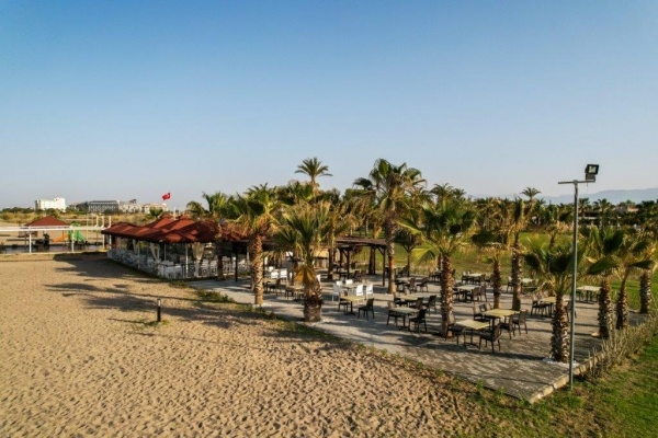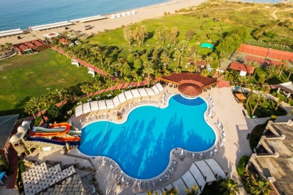 A kiváló minőségű, családbarát, 15 db kétszintes épületől álló szállodakomplexum 85 km-re fekszik az antalyai repülőtértől, 14 km-re Manavgat és 19 km-re Side központjától, ahova helyi járatú busszal (dolmus) vagy taxival is eljuthatunk. A szálloda közvetlen a homokos, aprókavicsos strand mentén helyezkedik el. Nyaralásunk során mindenképpen érdemes elmerülnünk a bazárok széleskörű kínálatában, felfedezhetjük Side antik romvárosát, vagy csak élvezzük a szálloda számtalan szolgáltatását! Side ókori romvárosa, valamint Manavgat turisztikai központja a szálloda saját üzemeltetésű shuttle járatával (díj ellenében) könnyedén elérhető.