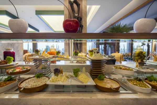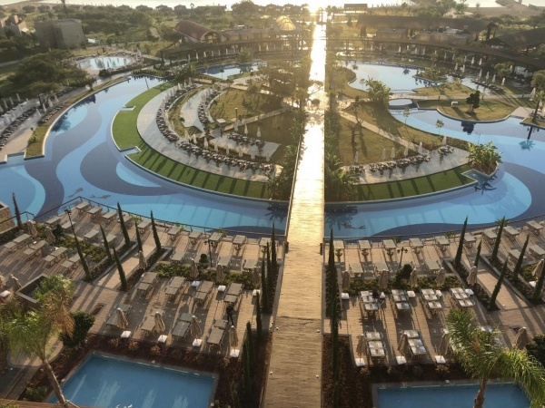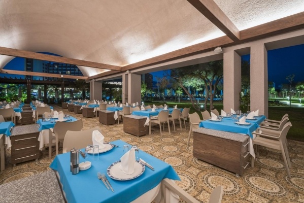 Ellátás: ultra all inclusive ellátás, benne: svédasztalos reggeli (07:00-10:00), késői reggeli (10:0-11:00), svédasztalos ebéd (12:30-14:30), svédasztalos vacsora (18:30-21:30) és éjjeli vacsora (00:00-02:00), könnyű grill ételek, pizzák és tésztafélék a snack étteremben (12:00-16:00), korlátlan és térítésmentes italfogyasztás az étkezések és a szálloda legtöbb bárjában, az italválaszték a szálloda által meghatározott helyi és import prémium márkás alkoholos, alkoholmentes italokra és koktélokra is vonatkozik azonban a palackozott italokra és a frissen facsart gyümölcslevekre nem alkalmazható. Sütemények, kávé és tea fogyasztása a lobby bárban (16.30-18.30), jégkrémek, csúszdapark használata (7 különböző csúszda, 10:00-12:00 és 14:00 -17:30 között), Wi-Fi internetkapcsolat, a sportpályák használata, darts, asztalitenisz, fitneszterem, fedett medence, törökfürdő, szauna és gőzfürdő használata. A megjelölt időpontokon kívül illetve a szálloda egyes bárjaiban és a tematikus éttermeiben a fogyasztás, térítés ellenében.