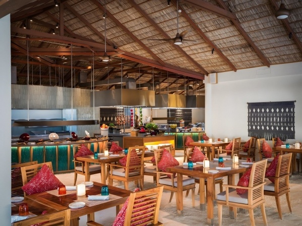 A vendégek több étkezési lehetőség közül választhatnak. Az Atoll Piac étterem büfé formájában kínál nemzetközi ételeket és tematikus esteket. Emellett hat ? la carte étterem is rendelkezésre áll: az Ithaa Undersea nemzetközi konyhát kínál a víz alatt, az Ufaa by Jereme Leung maldív és kínai ételeket, a Sunset Grill grillezett fogásokat és tengeri herkentyűket, a Mandhoo helyi specialitásokat és tenger gyümölcseit, a Koko japán és grillezett ételeket, míg a Vilu olasz konyhát. A szállodában három bár működik, köztük egy kizárólag felnőtteknek, valamint borászat is elérhető. A mindent bele ellátás reggelit, ebédet és vacsorát tartalmaz meghatározott időpontokban, büfé vagy ? la carte formában a kijelölt éttermekben, valamint snackeket és alkoholmentes, illetve helyi alkoholos italokat a kijelölt bárokban a megadott időszakokban. Az all inclusive karszalag viselése kötelező.