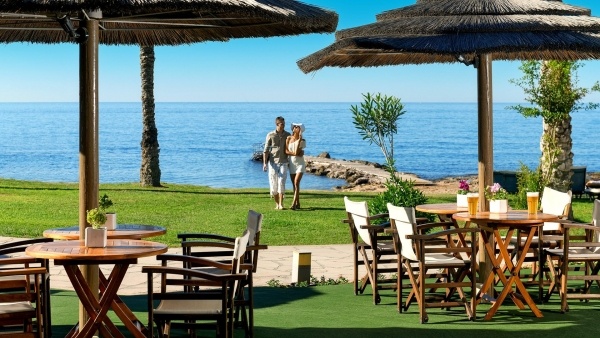 A szálloda közvetlen közelében elhelyezkedő nyilvános, homokos strand néhány sziklás résszel tarkított, enyhén lejt a tenger felé, így ideális a fürdőzéshez és a napozáshoz. A part a szálloda területéről, egy tengerparti ösvényen keresztül kényelmesen megközelíthető. A kijelölt strandszakaszon a vendégek számára a napernyők, nyugágyak, matracok és törölközők ingyenesen állnak rendelkezésre.
