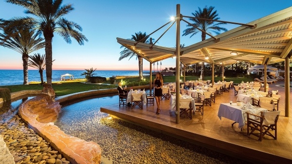 A szálloda gazdag és változatos gasztronómiai kínálattal várja vendégeit, ahol minden étkezés különleges élménnyé válik. Az Atrium étterem büfé és felszolgált ételekkel, ciprusi, olasz, mediterrán és távol-keleti ízekkel, valamint tematikus estekkel csábít. A Leda étterem svédasztalos és ? la carte formában kínál olasz specialitásokat, míg a Zephyr étterem - kizárólag 16 éven felüli vendégek számára - mediterrán reggelikkel és nemzetközi konyhával vár. A májustól októberig nyitva tartó Adonis étterem ? la carte mediterrán fogásokat kínál, a Palm Tree étteremben pedig szabadtéri, al fresco vacsorák élvezhetők ugyancsak mediterrán stílusban. Az éttermekben gyermekülések és vegetáriánus ételek is elérhetők, a vacsoránál az elegáns öltözet kötelező (urak számára hosszú nadrág), és minden ? la carte vacsorához előzetes foglalás szükséges.