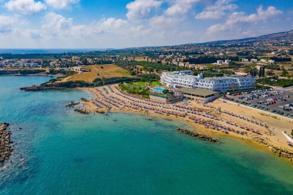 Paphos vonzáskörzetében, a Coral Bay-en, festői környezetben, közvetlenül a homokos tengerparton épült, nagy kerttel rendelkező ,,A" kategóriás apartmanhotel.