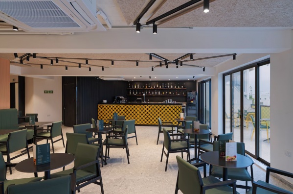 A modern, 7 emeletes szálloda 42 szobával rendelkezik.