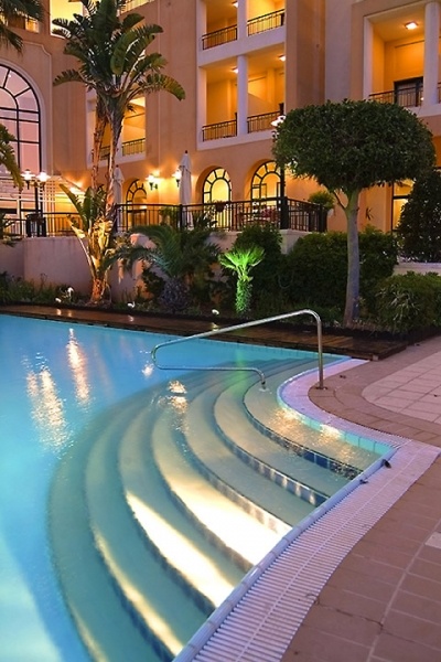 Fekvése: a kiemelkedően magas kategóriájú, kettőszázötven szobás, St. George's Bay Resort a Corinthia hotellánc egyik büszkesége, St. Julianstól nem messze, közvetlenül a sziklás strandon, a kedvelt Szent György-öbölben fekszik, gyönyörű kilátással a tengerre és Észak-Máltára. Paceville, Málta egyik legnagyobb mulató- és szórakozónegyede, sétatávolságnyira található. A szálloda közelében (kb. 400 m) található buszmegállóból egyénileg is megközelíthetjük a sziget bármely pontját.