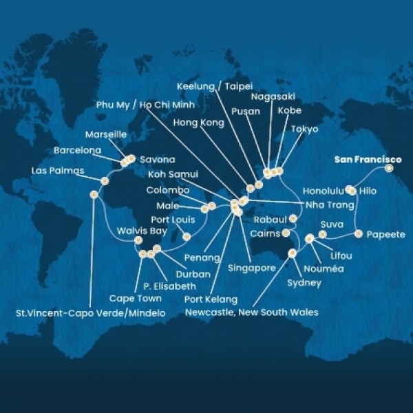 | 95. nap | Las Palmas (Kanári-szigetek) | 07:00 | 15:00 |
