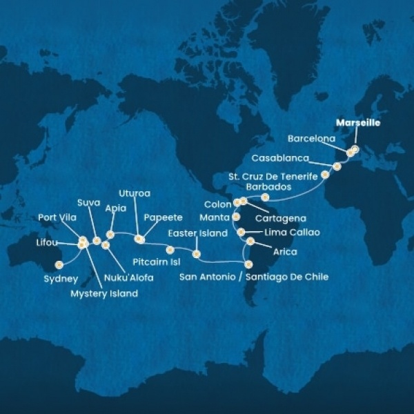 | 35. nap | Easter Island (Chile) | -: | 18:00 |