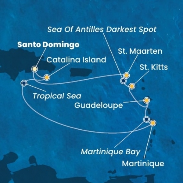 | 2. nap | Catalina Island (Dominikai Köztársaság) | 08:00 | 17:30 |