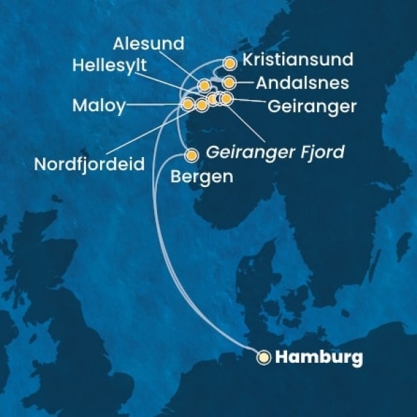 | 8. nap | Geiranger (Norvégia) | 11:30 | 18:00 |