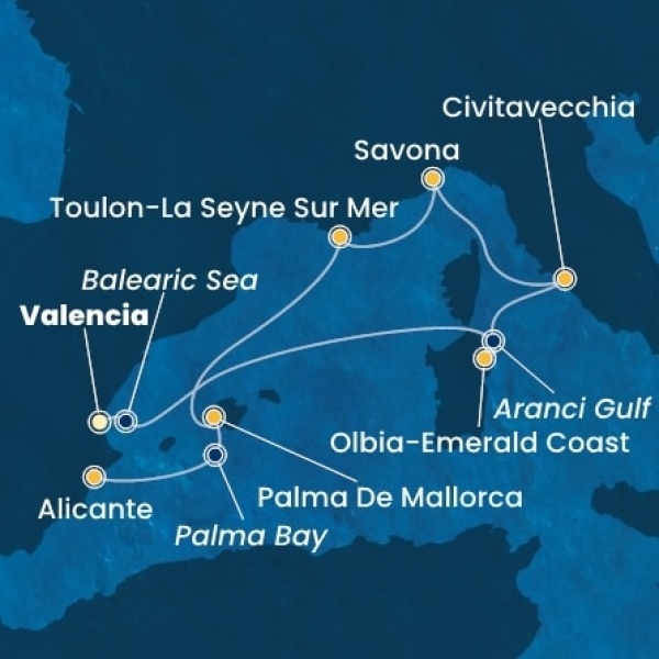 | 7. nap | Palma De Mallorca (Spanyolország) | 10:00 | 22:00 |