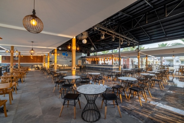 A Crystal Aura Beach Resort közvetlen közelében egy saját kavicsos strand található. A strand minőségéért és tisztaságáért Kék Zászlóval tüntették ki. A napozóágyak, matracok, napernyők és törölközők ingyenesen állnak rendelkezésre. Van egy Ultra All Inclusive strandbár.