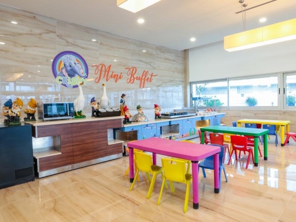 GYERMEKEKNEK: gyermekmedencék o beltéri gyermekmedence o gyermek aquapark o játszótér o mini diszkó o minimozi o mini klub (4-12 év) o tinédzser klub (13-16 év) o gyermekbüfé o gyermekágyak kérésre o gyermek animációs programok o gyermekbabakocsi térítés ellenében