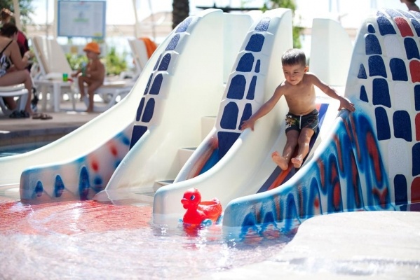 GYERMEKEKNEK: gyermekmedence o fedett gyermekmedence o gyermekcsúszdák o miniklub (4-12 éves korig) o teen klub (13-16 éves korig) o játszótér o minidisco o minimozi o gyermek animációs programok o kiságy o babakád o gyermekbüfé o babakocsi térítés ellenében