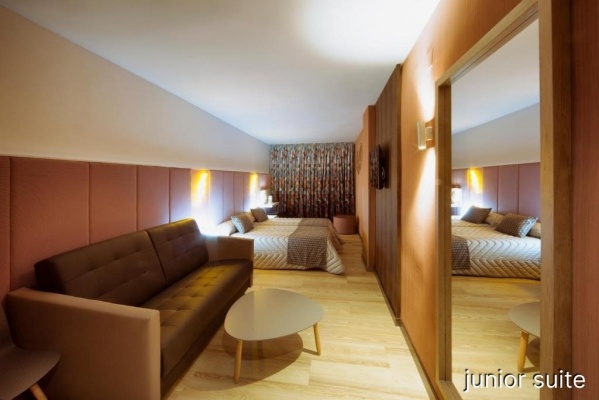 Junior lakosztály: 2 fő részére, 1 vagy 2 pótágy elhelyezésére alkalmas, kb. 29-30 m?. Légkondicionált, fürdőszoba zuhanyzóval, WC-vel és hajszárítóval. Vezeték nélküli internet, műholdas televízió, telefon, kis hűtő. Erkély asztallal és székekkel, kilátás a medencére. Széf használata térítés ellenében.