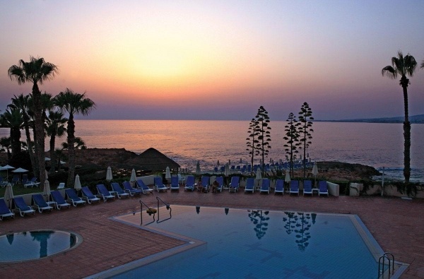 Paphos üdülőövezeti, Chloraka elnevezésű részén, közvetlenül a tengerparton épült, régebbi építésű, különleges hangulatú és rendkívül népszerű szálloda.