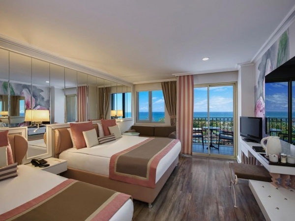 ELLÁTÁS: ultra all inclusive o büféreggeli, ebéd és vacsora o késői reggeli o délutáni és éjszakai snackek o kávé, tea és sütemények o a'la carte éttermek (török, halas, olasz, sushi, kínai, mexikói) - a tartózkodás alatt 1 alkalommal, előzetes foglalással o minden helyi és néhány import alkoholos és alkoholmentes ital o minibár: naponta feltöltve (üdítők, víz, sör, csokoládé és chips)