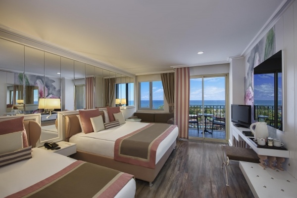 - Ultra All Inclusive: minden étkezsé büférendszerben, éjszakai snack-ételek 20:00 és 02:00 óra között, kávé, tea és palackozott üdítők reggelinél, üdítők, sör, bor és egyes helyi alkoholos italok ebédnél és vacsoránál, vitamin bár 10:00 és 18:00 óra között, cukrászda 11:00 és 18:00 óra között, strandbár 10:00 és 18.00 óra között, valamint egy külön részen 20:00 és 24:00 óra között vízipipa, a snack-bárban snack-ételek 12:30-15:00 óra között, kávé és keksz 16:00 és 17:00 óra között, italok 20:00 és 02:00 óra között, diszkó 23:00 és 02:00 óra között, helyi és egyes import alkoholos és alkoholmentes italok a különböző bárok nyitvatartása szerint, tartózkodásonként 1x étkezés az a'la carte-éttermek egyikében 19:00 és 21:30 óra között ingyenesen (török, hal, olasz, sushi, japán, kínai és mexikói ételek, előzetes foglalás szükséges). Az Ultra All Inclusive szállodák szolgáltatásai bizonyos részletekben szállodánként eltérhetnek.