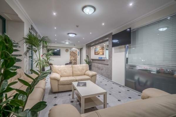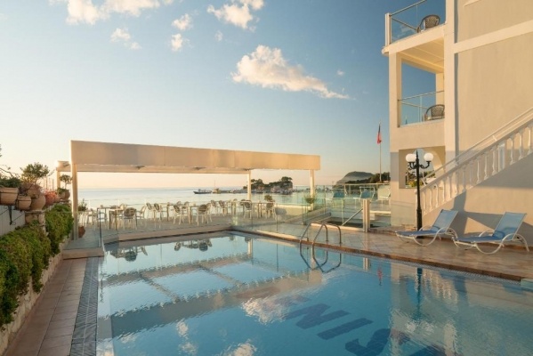 Laganas településen, közvetlenül a homokos tengerparton elhelyezkedő, két épületből (első épület: közvetlenül a parton helyezkedik el, medencével, medencebárral és a fő étteremmel, második épület: a kis utca másik oldalán található, recepcióval, medencével, medencebárral és reggelit felszolgáló étteremmel) álló, kiváló minőségű modern családias 3 szintes, lifttel rendelkező közkedvelt szálloda. Kávézók, tavernák, üzletek kb. 300 méternyi távolságra találhatók.