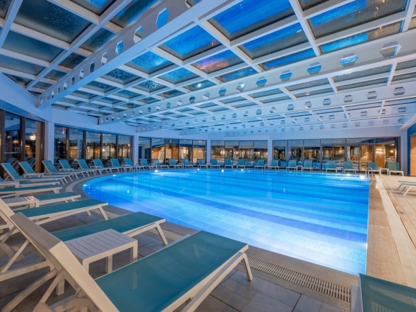 Úszómedence (édesvízi, kb. 1600 m?, mélysége 1,4 m); gyermekmedence, (édesvízi, kb. 160 m?, mélysége 0,5 m); úszómedence 6 csúszdával ( édesvízi, kb. 180 m?, mélység 1,2 m); gyermekmedence (édesvízi, kb. 20 m?, mélység 0,5 m). Ingyenes napernyők és napozóágyak a medencék mellett, törölközők letét ellenében rendelkezésre állnak. Asztalitenisz, fitnesz, boccia; mini klub (4-12 évesek számára), nappali és esti szórakoztató programok felnőtteknek és gyermekeknek, diszkó.
