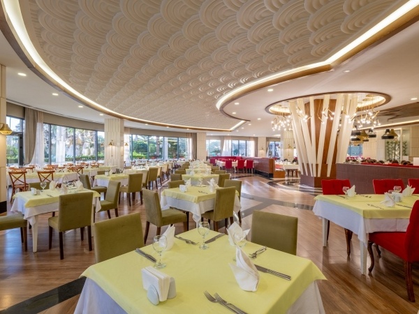 Ultra all inclusive: reggeli (7:00-10:00), késői reggeli (10:00-11:00), ebéd (12:30-14:00), vacsora (19:00-21:00) büfé formájában a főétteremben; gozleme palacsinta (11:00-16:00), harapnivalók (12:00-16:00) a strandbárban; harapnivalók a cukrászdában (14:00-22:00); éjszakai harapnivalók (22:00 és 7:00 között), éjszakai leves (23:00 és éjfél között); alkoholmentes és helyi italok, valamint kiválasztott importált alkoholos italok (24 órában) a kijelölt bárokban, egy vacsora tartózkodásonként egy kiválasztott ? la carte étteremben (előzetes foglalás szükséges); az all-inclusive karszalagot viselni kell.