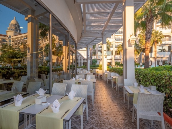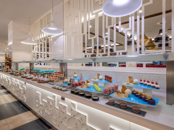 Ultra all inclusive: reggeli (7:00-10:00), késői reggeli (10:00-11:00), ebéd (12:30-14:00), vacsora (19:00-21:00) büfé formájában a főétteremben; gozleme palacsinta (11:00-16:00), harapnivalók (12:00-16:00) a strandbárban; harapnivalók a cukrászdában (14:00-22:00); éjszakai harapnivalók (22:00 és 7:00 között), éjszakai leves (23:00 és éjfél között); alkoholmentes és helyi italok, valamint kiválasztott importált alkoholos italok (24 órában) a kijelölt bárokban, egy vacsora tartózkodásonként egy kiválasztott ? la carte étteremben (előzetes foglalás szükséges); az all-inclusive karszalagot viselni kell.