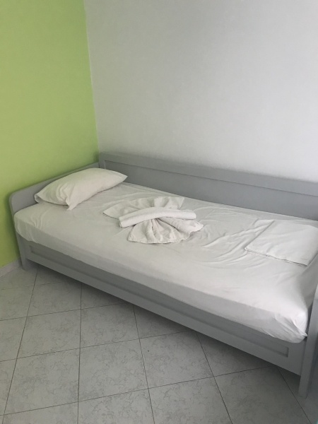 - 3+1 ágyas apartman: 1 hálószobából és nappaliból áll, a második pótágy csak 6 év alatti gyermek részére foglalható. Az apartman felszereltsége megegyezik a stúdióéval.