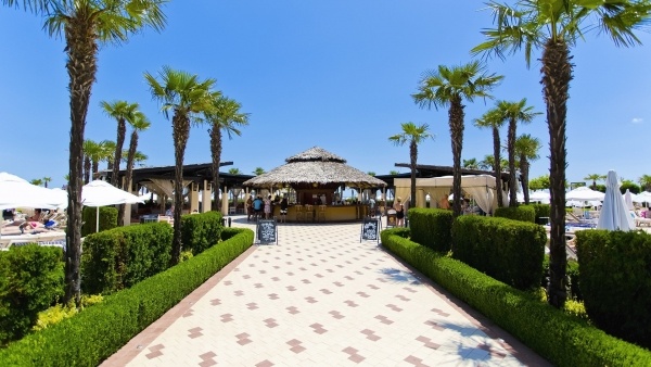 A szabadstrand különálló szállodai résszel rendelkezik. Homokos/aprókavicsos, széles,és lassan mélyülő. A strandot a sétányon keresztül lehet megközelíteni. Ingyenes napernyők, napozóágyak és törölközők állnak rendelkezésre.