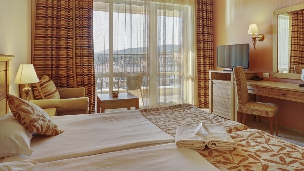 A szálloda körülbelül 1,5 km-re található Napospart központjától, ahol boltok, bárok és éttermek várják a látogatókat. A szupermarketek körülbelül 400 méterre, az Action Aquapark pedig körülbelül 2 km-re található. Nessebar történelmi városa körülbelül 7,5 km-re van. A burgaszi repülőtér körülbelül 30 km-re, a varnai repülőtér pedig körülbelül 100 km-re található. A közlekedés kényelmes, a buszmegálló körülbelül 300 méterre van a szállodától.