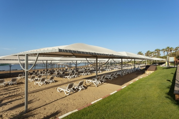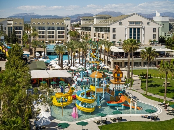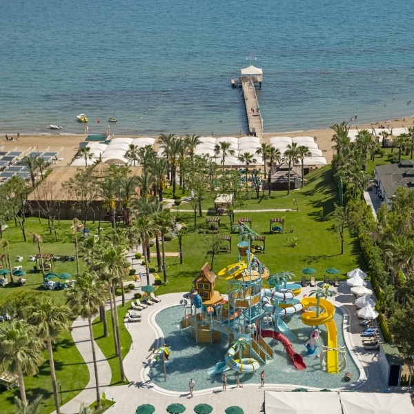 A családbarát szálloda közvetlenül a lassan mélyülő, homokos tengerparton fekszik, Side központjától kb. 13 km-re, ahova menetrend szerinti buszokkal is el lehet jutni. Ultra All Inclusive ellátás, medence vízi játékokkal, több étterem és wellness-részleg is várja a vendégeket.