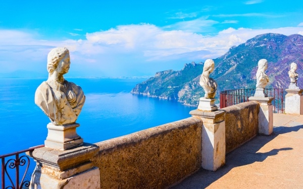 Utunkat folytatva egy igazi ékszerdobozt látogatunk meg, a festői Ravello ismerős lehet filmekből, irodalmi művekből, így Boccaccio Dekameronjából. Ravello az Amalfi-part rejtett gyöngyszeme többi híres településével ellentétben nem a tengerparton fekszik. Az apró, de annál hangulatosabb kisváros főtere, a dóm és kanyargós utcái igazi olasz hangulatot árasztanak, s egyik leglátogatottabb látványossága a csodálatos Rufolo-villa és a Villa Cimbrone kertje, ahová a főtérről sétálva juthatunk el. A villa romantikus kertje, különleges épületei, lugasai, gyönyörű, szobros terasza és egyedülálló kilátása a Salernói-öbölre, mindenkit magával ragad. A híres, 1955-ös Sissi film Korfu jeleneteit is itt forgatták. Innen 10 perces sétára található Ravello másik gyönyörű villája, a Villa Rufolo. Itt megismerkedhetnek a XIII. századi arab, szicíliai és normann építészeti stílusok ötvözésével. A közeli panoráma-pontból pazar kilátás nyílik az Amalfi-partra.