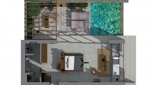 - Tropical-pavilonok - egylégterű szoba, privát medence, kertre néző, belépés a HAUTE LIVING részlegbe