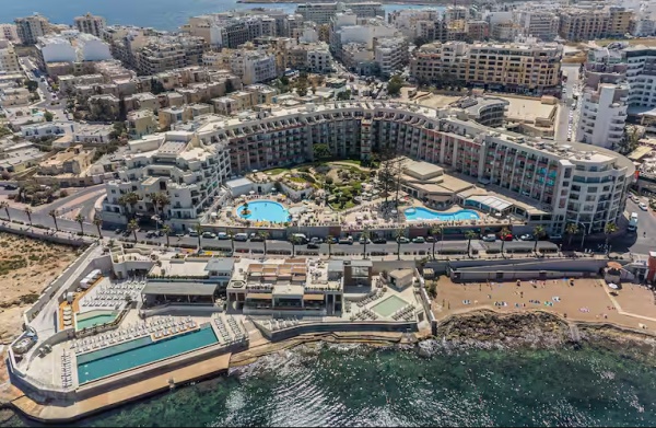 modern újépítésű, kiemelkedő minőségű tengerpart melletti szálloda, a St. Paul's Bay öbölben, Qawra üdülőhelységben helyezkedik el. A sziklás tengerparttól mindössze a tengerparti út és a sétány választja el.