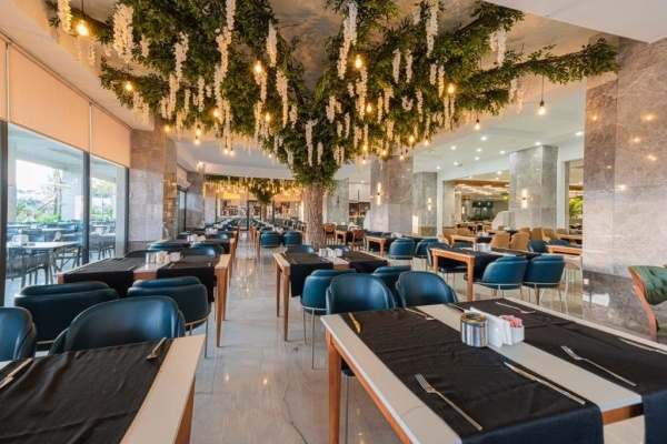 - All Inclusive: Reggeli, ebéd és vacsora büférendszerben, késői reggeli, éjféli leves (23:00-23:30), korai mini reggeli (00:00- 06:00), gyermekbüfé a főétkezéseknél, napközbeni snackek, kávé/tea és sütemények, gofri és fagylalt bizonyos időpontokban, helyi alkoholos és alkoholmentes italok (10:00-24:00), minibár naponta vízzel feltöltve, 3 a'la carte étterem (tartózkodás során egy alkalommal, előzetes asztalfoglalással).