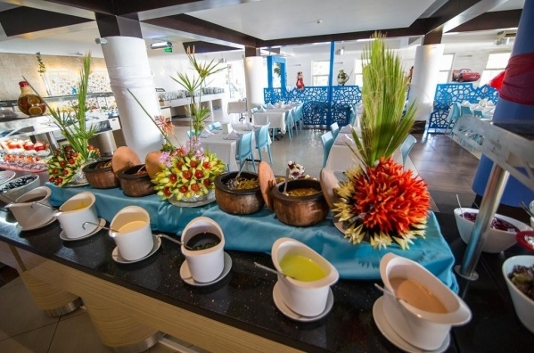 - All Inclusive: minden étkezés büférendszerben, éjfélkor leves 23:30 és 00:30 óra között, snack-ételek 12:30 és 17:00 óra között, török palacsinta 12:30 és 16:30 óra között, fagylalt, tea és kávé a lobby-bárban 10:00 és éjjel 02:00 óra között, kínai, olasz és török a'la carte-étterem 19:30 és 22:00 óra között (előzetes foglalás szükséges, tartózkodásonként 1x ingyenesen), egyes helyi alkoholos és alkoholmentes italok 10:00 és 24:00 óra között. Az All Inclusive szállodák szolgáltatásai bizonyos részletekben szállodánként eltérhetnek.