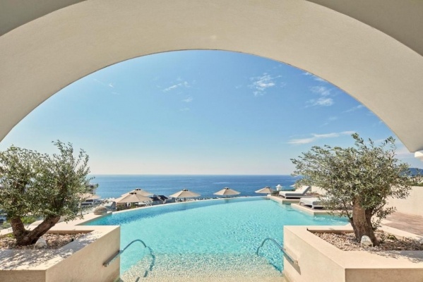 Kalithea településen, zöldövezetben, domboldalon, 78.000 nm alapterületen elhelyezkedő 5 csillagos ,,Adults only", 209 szobás, 5 csillagos luxus szálloda, kb. 600 méternyi távolságra az Ammades strandtól, fantasztikus kilátással az Égei tengerre.
