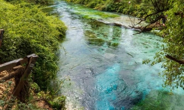 Továbbutazás a Syri i Kaltërnél zubogó, híres Kék szem-forráshoz. A több mint 50 méter mély forrásból 18.400 l/s ivóvíz tör a felszínre, ez a Bistricë folyó eredete, természetvédelmi terület. Rövid séta a forrástó körüli ligetes erdőben.