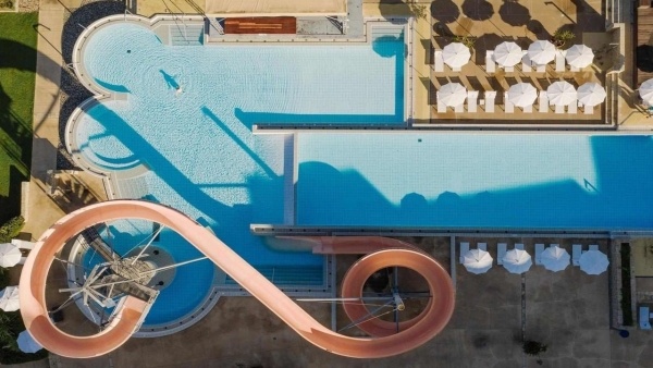 A szálloda közelében található strand homokos-köves, és kb. 1,7 km hosszú. A strand Kék Zászló tanúsítványával is rendelkezik, ami garantálja a kiváló vízminőséget és a tiszta környezetet, így ideális helyszínt biztosít a pihenéshez és a vízi sportokhoz.