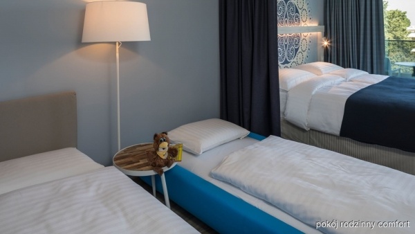 A családi komfort szoba kb. 25 m?-es, 2 fő részére, 2 gyermek számára pótággyal vagy kihúzható kanapéval, légkondicionált, fürdőszobával (kád vagy zuhany, WC, hajszárító), valamint egy második fürdőszobával (kád vagy zuhany, WC, hajszárító, köntös, papucs), vezeték nélküli internettel, műholdas televízióval, telefonnal és minibárral rendelkezik. Az erkély asztallal és székekkel van felszerelve, és részleges tengerre néző kilátással rendelkezik. Térítés ellenében széf elérhető.