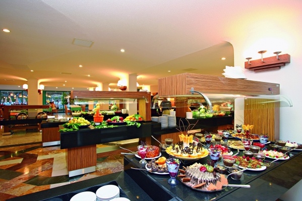 All Inclusive: Reggeli, ebéd és vacsora büférendszerben, késői reggeli (10:00-11:00), éjféli snackek (23:00-24:00), napközbeni snackek, kávé/tea/ sütemények, minibár érkezéskor üdítőkkel és vízzel, utána csak vízzel feltöltve, helyi alkoholos és alkoholmentes italok (10:00- 24:00), a'la carte éttermek (mediterrán, hal, grill, tartózkodás során 1 alkalommal, előzetes asztalfoglalással).