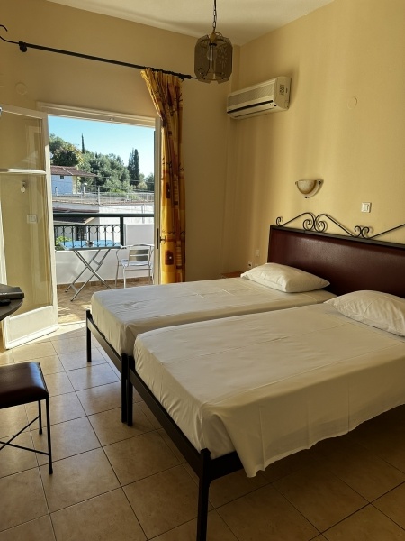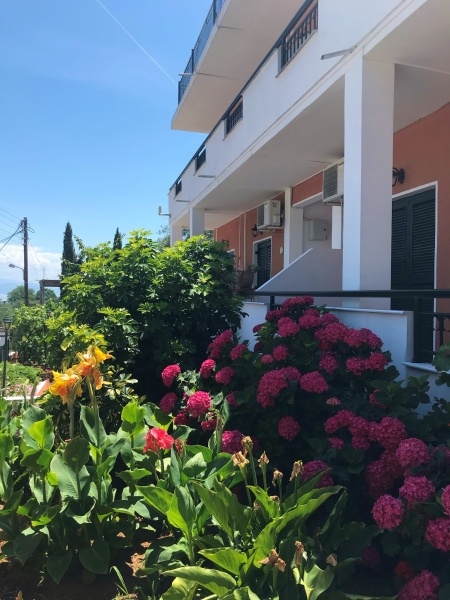 Moraitika ófalu enyhén domboldali részén található kétszintes, felújított épület, mintegy 3-500 méterre az aprókavicsos, homokos partszakasztól (a Delfinia Hotel melletti partszakasz) és a nyüzsgő városközponttól.